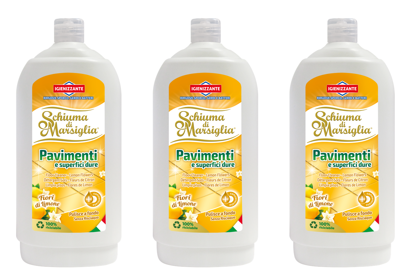 3 x Detergent igienizant Schiuma di Marsiglia Pavimenti – Lamaie, 1 L